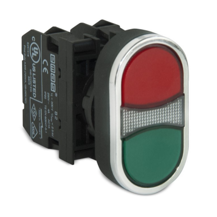 B Serisi Plastik 1NO+1NC Çiftli Büyük Düz Kırmızı-Yeşil 22 mm Buton